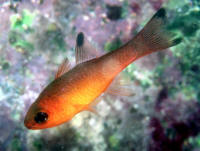 Cardinalfish. Tropical W. Atlantic. To three inches. Light red overall w/