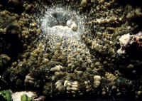 shallow back reefs. Symbionts include the Squat Anemone Shrimp and