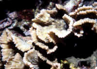 • subarborescent or laminar with vertical spires Husbandry: A note regarding the movement, especially the collection and shipping phases of this family's members. They are fragile skeletoned and copious producers of mucus and other wastes and should be not be fed for a good week ahead of long distance travel, and packed "heavy". That is, with plenty of water per specimen, as many of these corals are lost in transit from their own pollution, and with loose 4 mil bagging material packed with them to prevent rubbing and breakage of their delicate skeletons en route. Placement: Must be carefully placed so that their strongly-stinging sweeper tentacles don't reach other immotile invertebrates. Count on at least six inches in any direction as a "no man's land" between them and other Stony and Soft Corals. Further, they should be placed on sloping hard (rock) surfaces that affords gentle current around them and given enough circulation to remove any accumulating detritus. Light/Lighting: Need not be intense, and these corals are often best placed off to the side of bright light sources, particularly metal halides. Reproduction: Various species have been reported to spawn in captivity and are known to be hermaphroditic. Most all specimens are wild collected with some asexually fragmented and resold/traded by local hobbyists. Due to slow growth, and current low-demand, Pectiniids are not yet commercially produced in ready numbers. Foods/Feeding/Nutrition: All the Pectiniids are photosynthetic and do best in exposed, brightly-lit conditions. Additionally they all do feed at night with long, near-transparent tentacles. Some aquarists do, some don't... feed theirs that is. These corals are at their best being offered some fine-particulate meaty foods on an occasional basis. Disease: Principally arises from mis-collection, shipping damage, and consequent handling. Take care to handle these animals by their bottoms to prevent laceration of their thin living tissue. Exposed areas are best kept free of algae by utilizing small, more-gentle species of mainly-herbivorous Hermit Crabs. Ones obviously infested (with discolored jelly masses, receding tissues) may be aided by use of dips (lowered spg, hexose sugars, iodine or dilute malachite), and placement in sterile water under low illumination. Cloze: Other than some members penchant for stinging other nearby Stony and Soft Corals, and perhaps their slow growth, the Pectiniids are a group of interesting, easy to care for coral species that deserve far more representation in the ornamental aquatics fields. Perhaps with the release of several new "Coral Books" and their popularization, consequent easy, though slow asexual fragmentation in the hobby, the Lettuce Corals will come into their own. Bibliography/Further Reading: Borneman, Eric H. 2001. Aquarium Corals, Selection, Husbandry and Natural History. Microcosm/TFH Charlotte, VT. 464pp. Fossa, Svein A. & Alf Jacob Nilsen. 1998 (1st ed.). The Modern Coral Reef Aquarium, v.2 (Cnidarians). Bergit Schmettkamp Verlag, Borhheim, Germany. 479pp. Vargas, Tony. 1998. Feature Coral (column/series): Pectinia. FAMA 1/98. Veron, J.E.N. 1986. Corals of Australia and the Indo-Pacific. U. of HI press, Honolulu. 644 pp. Veron, J.E.N. 2000. Corals of the World. Australian Institute of Marine Science. Queensland, Australia. three volumes. |