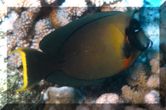 blackish Brown or Spot-Cheeked Surgeonfish. Manageable size (to