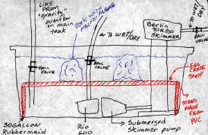 they are "serious" but I wondered if this Converting 40 gallon to sump I want to convert my old 40 gallon tank (34'' long 24'' deep) to a sump with Caulerpa and live rock for my 100 gallon fish/invert tank. The 40 currently has an eclipse system with the standard lighting. I am also installing a plenum in the sump. <Good ideas> I am thinking that it would be wise to at least keep using the eclipse "canopy" even without the filtration. <Okay> Bob: 1) If I upgrade to the 1x 55 watt SmartLite (50/50 tube), will this be enough light for Caulerpa and live rock even at 24'' deep? Is this a worthy expense? <Hmm... two would be better, but yes, a good start...> 2) The 40 gallon currently has the typical 2x18 watt T-8 tubes. Will the upgrade be dramatic or hardly noticeable (aesthetically)? <Dramatic both functionally and esthetically> 3) When creating this sump, how do you purchase the siphon pump and the return pump? It seems to me that it makes sense to go with two pumps that provide the same gph. . . <Yikes, you're frightening me... use an "overflow box" (I believe in gravity... though it has let me down... sorry about that) and a return pump... look at the CPR products website (link on the www.WetWebMedia.com site) here...> 4) I have read what is on the WWM site about circulation and understand about head placement. In my main tank, can you suggest a guideline for buying power heads for a 100 gallon tank? How many gph per head? <Dedicated? About 3-400 gph at the specified head> Thanks for your time and effort Bob. You are a valuable asset to this hobby !! David Dowless <A pleasure my friend. Bob Fenner> Mud filtration Hello, I read an article from you. The sub caption is "A mud-filter mechanicals set-up.". <Yes> I live in Germany, there we don't have the miracle mud from ecosystem aquarium. So I wanted to ask, if there are other muds for use in mud filters. <Yes indeed. In point of fact, as you likely know from "planted aquarium" experience soils of most sorts contain minerals that can/do act as catalysts... and that there are some such materials in/on most rock, substrates...> Here where I live we have the good advantage that our region was a reef millions of years ago. There we have a strong heavy yellow mud with very high part of calcium carbonate. <Yes... am a visitor to parts of Germany every other year... during the InterZoo show in Nuremberg (Nurnberg) travel about...> Do you know if somebody tried to analyze the miracle mud? <Yes... Leng Sy, the owner of the company is a nearby (Los Angeles, we live in San Diego to the south) friend/associate... tells me he, and others have done so...> About 30 years ago, reef aquariums where started by placing a hand of mud in it, bacteria etc.... <Yes, do know this anecdote... thank you> Please drop me a line. Thanks. Stefan Brunnengr?er <Anytime my friend, danke. BTW, do you read das Aquarium? Bob Fenner> Re: Mud filtration Hello Bob, yes but not often reading "das Aquarium", only if I get a free magazine from my dealer. There are not so interesting articles in there. I'm constantly reading "Koralle", where the discuss a mud filtration in the actual magazine. You can have a look: http://www.ms-verlag.de/meeresaquaristik/koralle/index.php <Thank you for this> What do you mean, should I try my mud in front of the door or shouldn't I? <I would just use live rock, not the mud for now> ... using a little tank and a hand full of Caulerpa ... Is only Caulerpa sertularoides working fine? <Yes> What's the real advantage of this algae? <Continuous photosynthesis mostly> Best Regards, Stefan Brunnengrer PS: Nuremberg is my favorite town here in Germany .. the old town ... the zoo ... the wonderful aquaristic shops ... :-) Do you know EW-Zoo in the Kopernikusstrasse? <Yes I do... very nice. Bob Fenner> Mud/Algae Filtration >I've read your book and was very pleased with it - hoping you come out with additional books in the future. <Thank you, and yes, a few more in search of help in publishing, sales and distribution...> >I have a few questions that I was hoping you could help me with in regard to an EcoSystem mud filter that I'm considering using to replace a wet/dry that I have on a 70 gal reef tank (100 lbs of Fiji live rock). >1) In your opinion, would it be useful to include a protein skimmer (red sea Berlin classic, driven by rio2100) before the Ecosystem mud filter, or should the skimmer be removed altogether? <Yes... and surprisingly enough we do know Leng Sy very well, and did design a filter like his... but using a protein skimmer!!! A few years back, but never on to market... But to answer your query, YES, I would/Do use skimmers with our "mud type" live algae filters> >2) Should UV and OZONE be removed if using a Ecosystem mud filter, or can they remain? <I think these are/would be useful adjuncts to the filtration> >3) Can a calcium reactor me used with the Ecosystem, or is this ill-advised? <I strongly advise it... very useful> >4) Since my live rock is my main ammonia, nitrite, nitrate filtration, could I simply replace my wet/dry with a EcoSystem mud filter, or do I need to cycle the mud filter on a separate tank before using it to replace my >wet/dry? <In almost all cases, simply switching them will work out fine in such scenarios. As you suggest, the established components in the main system will re-adjust, keep bio-geo-chemical cycling going.> >Thanks much! <You're certainly welcome. Bob Fenner> Mud? You referred to using a mud system a couple of times last week. Can you just throw some Caulerpa in the sump under a regular fluorescent tube and control phosphates or is it more complicated than that ? I really don't know what a mud filter is. Thanks >> This is about it... Some folks add mud purposely in addition... to supply possible missing materials, catalysts... Bob Fenner |