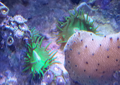 We've had these small bright green anemones for some time now (hitchhikers from