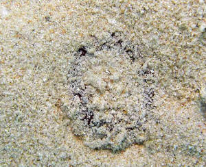 in the sand at about the 10 foot depth, and is usually covered
