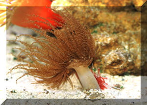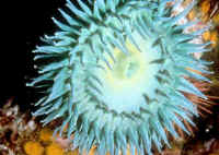 Locomotion: Is accomplished through a muscular-ciliary-mucus "gliding" of the bottom (basal or pedal disc) or complete loosening and "drifting" of the animal with current. Even mud-dwelling "tube" anemones are capable of moving and re-inserting themselves in soft substrates. Some species are actually pelagic, swimming about by lashing their tentacles. Feeding/Foods/Nutrition: Types, Frequency, Amount, Wastes Anemones possess rings of tentacles around their mouths used for prey collection and manipulation. These are arrayed with numerous stinging (cnidocysts) and sticky (spirocysts) cells below their surface. These specialized cells may be found in and on other body areas and assist in immobilizing and holding prey as well as warding off would-be predators. Underfeed, underfeed, don't feed! Underfeed, underfeed, don't feed! Most losses in captive systems are the result of over-feeding. How many more times do I feel I need to write this? Bunches! Some anemones have been kept for YEARS without any intentional external feeding. Know your stock! Many anemones (especially larger species) are detritivorous (a polite term meaning they eat poop), planktivorous, and largely chemoautotrophic/photosynthesizing species/individuals that hobbyists try to over-stuff with meaty/prepared foods. My bid for largest cause of loss of anemones is the consequences (lack of oxygen, hydrogen and other sulfide production...) from over-feeding. Cut it out! Within normal temperatures and other conditions, most can and do do well on weekly feedings. If you're going on vacation, leave them alone. For almost all varieties kept, an occasional (weekly or so) perfusion (wash?) of live brine shrimp, prepared mash of frozen or dried food, or frappe' (as in with your blender) of "fresh" marine food meant for human consumption (shellfish, shrimp, langouste, not-so-oily fish) with or without supplementation. Temporarily turn off your particulate filters and squirt the food onto their tentacular surface. Some authors suggest the use of beef and other foods unlikely to be encountered in the wild. I do not. Disease: Infectious, Parasitic An unhealthy specimen is sometimes hard to discern. When acquiring, avoid flaccid choices over good turgidity. Good specimens should not be torn, leaking, with grayish, whitish necrotic or obviously infected areas. Photosynthetic species should show evidence (color) of yellow, golden or green symbiotic algae. If a specimen shrinks down, don't automatically assume the worst and toss it. Maybe it's just "bummed-out" by too much/too little light, circulation, chewing tank-mates, polluted water from over-feeding, a metal source. Bibliography/Further Reading: http://www.reefscience.com/Archive/Anemones/anemones.htm http://biodiversity.uno.edu/ebooks/intro.html http://www.karensroseanemones.net/deflating.htm Humann, Paul 1992. Reef Creature Identification, Florida, Caribbean, Bahamas. New World Publications, Inch. Jacksonville, Florida. 320pp. |