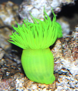 Environmental: Conditions Anemones for the most part are extremely un-demanding. Some writers state otherwise, but many species have been maintained (and reproduced) in synthetic sea water. Many folks have suggested at least blending some natural with artificial marine water. Phillip Gosse in A Handbook to the Marine Aquarium in 1855 (yes, that's eighteen fifty-five), public aquaria, large trans-shippers, wholesalers, retailers, even I have had success in non-"real" water. Habitat: Bellomy goes so far as to suggest a full-blown anemonarium. A suitable chemically inert glass or plastic container of as large a capacity as practical/available will help insure stability. Shallow water, intertidal species predictably make for good choices for small, crowded conditions. Be aware of your species life habits, or at least be prepared to offer them a choice of light conditions, substrate types and variable circulation. See below re acclimation. Chemical/Physical: Some writers list anemones as their choice for hardiest of marine animals, surviving/tolerating fluctuations in temperature, salinity and pH better than other groups. Many may be crowded (some species of Condylactis) together or housed in small aquaria. There are few things that seem fatal to anemones, other than metal-based chemical therapeutics or accidental introduction of metal ions from other sources. For almost all species identified, absolute and varying specific gravity is not problematical. Keeping it between 1.022 and 1.028 is recommended. Ditto with temperature; something between seventy and eighty degrees F is great. Keeping your eye on possible weak buffering by natural water, a pH of 7.6 to 8.3 is satisfactory. For crowded systems in particular, I would utilize a test kit weekly and periodically dose the system with water changes supplemented with a "pinch" of sodium bicarbonate or more-expensive adjuvant-equivalent. Biology/Other: Anemones are aerobes, they need oxygen to respire and need to shed themselves of excess carbon dioxide. Some have internal (endo)symbiotic algae (zooxanthellae) which aid in these processes, in addition to producing food sugars. Respiration is accomplished by simple osmosis and accelerated active-transport. Filtration: Most importantly, circulation is important. I prefer a non-bubbly power-head, canister or inside-power filter over air-infusing mechanisms for moving the water around; but whatever the means do move it vigorously. One of my childhood heroes Robert P.L. (Straughan) warned against air-bubble entrapment mortality in captive anemones. Good aquarium practices in set-up and maintenance will preclude anemone loss. The removal of regurgitated food in mucus balls and bands through netting and siphoning must be a regular maintenance feature. Digestible foods are converted almost entirely into ammonia...to be removed by system filtration. Some filter-feeding anemones produce mucus nets, pass them up and over, trapping particles and ingest the whole mass. Mucus strands from locomotion and filter-feeding do not appear to be toxic. Behavior: Territoriality: What? Oh yes, they do can/move and do wage outright chemical/physical war with undesirable tankmates. In particular other stinging-celled organisms: corals, sea fans (gorgonaceans), and other anemones may sting/digest each other to the death. Suitable choice in specimens, crowding/provision of habitat are important considerations. Introduction/Acclimation: First impressions are important! I stand by my advice; do not introduce the shipping/collecting water into the "home" system (unless possibly these are the only/first live specimens). Take the anemones) out of the shipping water, or alternatively rinse them over with holding system water, removing wastes and excess mucus. If possible do all this underwater including moving them into the system via a container. Place the specimens in their desired area, waiting a while for attachment if appropriate/possible. Overall circulation should be arrested for the meanwhile. Observe the new arrivals frequently for the first hours/day or so. Be careful re situating them near sharp corals, coral and shell skeletons or rocks. Purposely move them if necessary, otherwise they will move themselves. Predator/Prey Relations: Can be important. Many fishes and crustaceans will eat anemones if hungry...Triggerfishes and puffers, many butterflyfishes are not to be trusted. And yes, anemones may and do eat most anything they can snare. I wish you and I had all the money "spent" on feeding sea-horses, other barely mobile tankmates and unfamiliar species of fishes mixed with "exotic" anemones. Reproduction: Spans the entire gamut, sexual and asexual. New individuals may form from a piece torn off during locomotion or trauma, by longitudinal or transverse fission. Sea anemones may be separate sexes or hermaphroditic. If same sex, generally eggs and sperm tend to be produced at different times. Fertilization and some development may occur within the body cavity or not. Typically, anemone larvae have a planktonic developmental phase before settling.