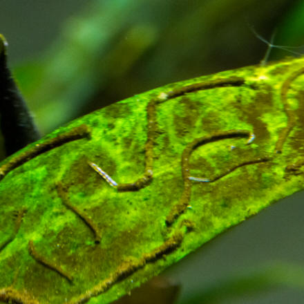 the larva are in everything. Sand, filter, sometimes on the glass resting.