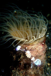 | Periclimenes sarasvati. Sarasvati Anemone Shrimp.