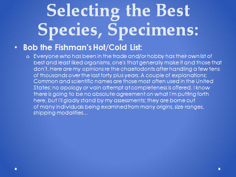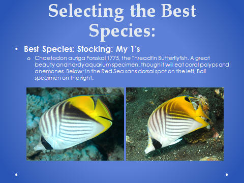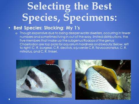 Foods/Feeding/Nutrition, Butterflyfish Selection, Butterflyfish Disease, Butterflyfish Disease 2, Angels and Butterflyfishes & Crypt,