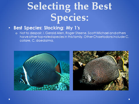 Foods/Feeding/Nutrition, Butterflyfish Selection, Butterflyfish Disease, Butterflyfish Disease 2, Angels and Butterflyfishes & Crypt,