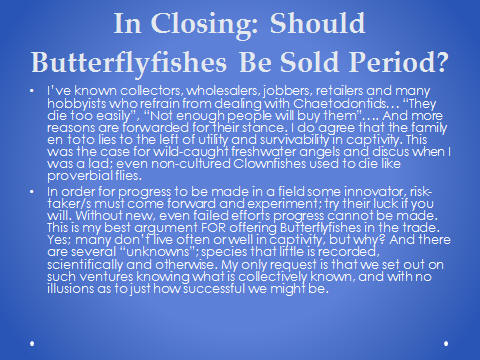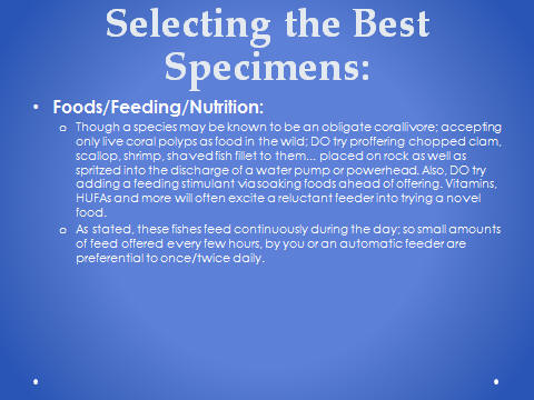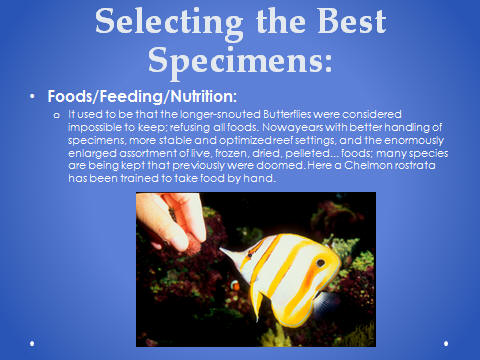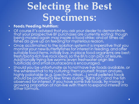 Foods/Feeding/Nutrition, Butterflyfish Selection, Butterflyfish Disease, Butterflyfish Disease 2, Angels and Butterflyfishes & Crypt,
