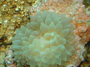 This anemone has moved to a position with minimal light and flow,