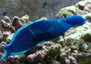 worry... See WWM, Fishbase.org re this species. Bob Fenner> Bird Wrasse tumor? 1/9/07 Hi Crew, <Michael> Thanks as always for the valuable information. I've tried to find detailed information related to this question but came up empty. I have a male bird wrasse that has been in my 250g fish-only tank for just over 2 years. He has always been healthy, a good eater, and active. <Gomphosus are really neat animals... am out diving with this species currently... in HI> There is a female bird wrasse in the tank also, and they get along well and interact most of the day. <In a system of this good size...> A few months ago, the male bird wrasse started developing a tumor-like growth on his snout. I did some initial research and found passing references that sometimes bird wrasses in captivity will develop such growths on their snouts, but none of the references I found seemed to know what the growth was. <Mmm... is it symmetrical? Colored? Is likely a natural protuberance> The few mentions I found also didn't express much concern that it posed a health risk. I let it go, thinking it was not anything threatening. But, the growth has gotten bigger and bigger, and is to the point now that I'm afraid it will cause real harm, perhaps by eventually blocking the fishes' vision or making its head so heavy it becomes over-stressed. To add to the concern, the female bird wrasse now seems to have the beginnings of the same thing on her snout. <Mmm, not altogether unnatural either... Labrids/wrasses are synchronous protogynous hermaphrodites... change from females into males... with their characteristics...> Are you familiar with these types of growths, and is there anything I can/should try to do about it? <Mmm, am familiar and no, nothing to do about it> I don't have the expertise to do anything surgically, but thought maybe I'm missing something nutrition-wise or otherwise. (The water quality has always been good and I do 15% water changes weekly.) Thanks. Mike <Do take a look at the pix on the Net... perhaps through Fishbase.org of G. varius... note that males do have a growth of sorts with age, size... on their upper snouts... and that females become males... There is likely no problem here. Do send along pix if you can. Bob Fenner> Green Bird Wrasse 7/12/06 I purchased a green bird wrasse