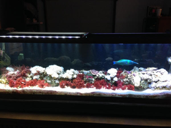 the tank. The wrasse still hides when I near the tank to feed it,