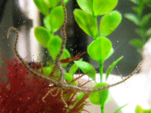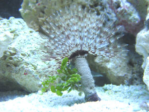 it.> Thank you! <Welcome, Benjamin> Hi everyone, I have a question about hermit crabs and refugiums 10/20/07 Hi Everyone, <Ed> You've all been a great help in resources on the web! I have a 20L with a 10 gallon refugium. The refugium is lit with two daylight 100w bulbs as well as 18w actinic and 18w 10,000k PCs. Currently, I have an arrow crab, <Keep your eye on this... become predaceous> 4 blue hermit crabs, as well as Chaetomorpha, and Phaeophyta (brown macroalgae). My question is, will the crabs (arrow and blue) be detrimental to my refugium? <Mmm, yes, in terms of eating organisms that should not be...> I ask this because I have recently decided that I would like to use the refugium to culture amphipods and copepods that are already growing within the tank. Will they pick them all out to extinction? <Too likely yes> Also, as a side question, what are your thoughts for Phaeophyta as a macroalgae for refugiums? <Can work... some species and types of systems better than others. Many colder water rigs especially. Need to pay attention to regular iodine/ate supplementation> Are they as bad as or better than Caulerpa? <Mmm, no> I know that the site does not recommend Caulerpa in the refugium, but could not find any info about Phaeophyta. <Is a huge group/Division of mainly macro-algae... Not well investigated for ornamental use as yet> Actually, I have another question. Too bad you all don't get paid for the number of questions we aquarists love to ask. <Would be a different venue if so... Not of my desire, design> I do have corals in the main take. I would like to know if it is possible to use the refugium to grow up zooplankton or phytoplankton? Is this possible and is it difficult? <Can be... not difficult; though more specialized gear would be better... particularly for the phytoplankton. You might benefit from searching out, reading Frank Hoff's work> Thanks Ed <Welcome. Bob Fenner> Overstocking, Hermit Crab eating snails - 2/26/07 <Hi Tracy, Brenda Here tonight.> Thank you for your great articles. <Your welcome.> We have a 33 gallon tank that is about 1yr running now. We started with live sand and began adding live rock and snails 1 month later. After 6 months we were up to 70 lbs live rock, 3 turbo snails 15 blue leg hermits <You have too many crabs. I recommend one per 10 gallon or less.> 6 Margarite snails, 1 sally light foot 1 cleaner shrimp, lots of little feather dusters on live rock, I have seen some bristle worms too, 1 blenny, 2 tiny maroon clowns and a yellow tang, 1 very small anemone its white and about 1/4 of an inch big. <1/4" anemone? Pest anemone? Your tank is much too small for a tang.> There is coralline growing and we have star polyps. All was well for a few months then the tang died. We checked the water (prior to this we change 10% every 2 wks) and did a 50% change the ph was 8.2 and nitrate 10 Two days later we did another water change. The salinity is kept at 1.023. The place where we get our supplies checks the other levels for us and said they were good. <Nitrates at 10 is not good, need to be zero. I suggest purchasing your own test kits and learning to test all of your water parameters. What will you do at midnight when you need to know your water parameters?> After the tang died the tank became over run with red slime algae and green hair algae. <Have you checked for phosphates?> We were able to combat the red algae but the green was unreal. We had to remove the fish to a holding tank and clean the algae of the live rock you couldn't see any live rock the algae was so bad. We scrubbed off the algae under RO water. Everything seemed nice and clean we tested the water, the store said all looked good the nitrate still at 10 though. <The LFS is not doing you any favors by telling you that your water is good when nitrates are above zero.> We put the fish back in and purchased a zebra turbo snail and 5 Nassarius snails and a conch snail and a peppermint cleaner shrimp. That was about 1 month ago 1 week ago we got a pink tipped anemone for the clowns who have out grown the little tiny one (sorry don't know what kind it is) the pink tipped hasn't quite settled yet still on the move some how I think it is running away from the clown that wont leave it for a second it actually lies down on its side wrapped in the tentacles of the anemone. <Buying any tank mate and not knowing the species is a bad idea. Your salinity is too low for an anemone. It should be 1.026. You have two anemones, and I have no idea what kind. You won't be able to successfully keep two species of anemones in a 33 gallon tank. A 33 gallon tank is border line for even one anemone, unless you are experienced with keeping anemones. Your tank is overstocked, and I believe you will continue to have problems. The anemone has not settled because it is unhappy with its environment.> Now 3 snails are dead, one of the hermit crabs is now very huge could he be eating them? <You bet it can!> He moved into a very large shell and looks to be about 2 1/2 inch by 1 inch big. Do you think the anemone has something to do with it? <Nope!> Thank you Tracy <You're Welcome. Please research all of your livestock and learn their requirements and compatibility with others before you buy. Good luck with your tank. Brenda> Red Serpent <Brittle> Star Compatibility with Orange Legged <Not Reef Safe> Hermit Crab 1/29/07 Hi guys and gals, <Hello Gordon, thanks for the inclusion! Mich with you this evening.> I bought a perfect looking red serpent star yesterday (about 6 inch diameter) from the LFS. <I presume you mean a Red Brittle Star (Ophioderma squamosissimum).> I acclimatized it over a few hours and then released it into my 55 gallon (fish and live rock with a couple of mushrooms and feather dusters and many invertebrates -- cleaner shrimp, peppermint shrimp, banded coral shrimp, Nassarius/turbo/Trochus/zebra snails, a number of very small (3/8 inch) orangey stars, and a variety of hermit crabs). Almost immediately after t