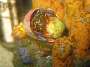 brownish red hermit, and 8 turbo snails. The unidentified crab is
