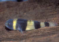Family Rhyacichthyidae, the Loach Gobies. Freshwater streams of the Indo-Australian Archipelago, Philippines, China, the Solomons. Have depressed heads, compressed tails, underslung mouths that sport a fleshy upper lip; small eyes, widely separated pelvic fins. Use these traits to cope with fast-movng water, fins, body shape, mouth to hold onto hard surfaces... To nearly thirteen inches in length. One genus, Rhyacichthys, with two species. There are other families containing freshwater, brackish gobioids. Bibliography/Further Reading: http://www.geocities.com/rubentolon/index.html Brown, Stanley. 1996. Gobies. V.4, #1 96 The J. of Maquaculture, The Breeder's Registry. Hunziker, Raymond E. 1985. Gobies for freshwater and brackish aquaria. TFH 12/85. Nelson, Joseph S. 1994. fishes of the World, 3rd ed. John Wiley & Sons, NY. For systematic reviews. Gobies: Castro, Alfred D. 98. Knight Goby. How to keep 'em and how to breed 'em. AFM 6/98. Kurtz, Jeff. 2000. The Knight Goby. A good reason to go brackish. TFH 11/00. Schofield, Diane. 1965. Busy little bees. TFH 1/65 Tomey, William A. 1969. The Grey Pearl of Siam. The Aquarium. 8/69. Sleepers Anon. 1982. A Peacock out of paradise. Aquariums Australia 2:3, 82. Lange, Gary. 2000. Modern masterpiece- The Peacock Gudgeon. A tiny work of art. AFM 6/00. Rosler, Hans Jurgen. 1997. The care and breeding of Tateurndina ocellicauda. TFH 2/97. Schreiber, Roland. 1995. The Fiery Sleeper. TFH 9/95. Tappin, Adrian R. 1998. The Empire Gudgeon. FAMA 1/98. Walker, Braz. 1970. The Spotted Sleeper. The Aquarium 4/70. Loach Gobies: Dingerkus, Guido and Bernard Seret. 1992. Rhyacichthys guilberti, a new species of Loach Goby from Northeastern New Caledonia (Teleostei: Thyacichthyidae). TFH 7/92. Mudskippers: Hansen, Pamela and Jorgen. 1979. The Mudskipper. TFH 7/79. Lass, David. 2001. Mudskippers. A fish becoming an amphibian. AFM 2/2001. Lucanus, Oliver. 1998. A fish out of water- Mudskippers. TFH 3/98. Mancini, Alessandro. 1991. Mudskippers in nature and captivity. TFH 6/91. McGregor, Glenn. 1999. Mudskippers: like a fish out of water. FAMA 4/99. Murdy, Edward O. 1986. Mudskippers of Malaysia. The lords of the mudflat.FAMA 11/86. Norris, T.L. 1984. A community Mudskipper tank. FAMA 9/84. Ono, Dana R. and Debra Sponder. 1982. Table-top Mudskippers. FAMA 10/82. Schwartz, Gerd. 1975. The Mudskipper. Aquarium Digest Intl. 3:4, 75. Sidley, Rodney. 1984. Keeping Mudskippers. FAMA 12/84. Taylor, Edward C. 1997. Mudskipper environment. Pet Business 11/97. Volkart, Bill. 1996. Mudskippers: Demanding by rewarding. TFH 5/96. Violet Goby, Dragon Eel: Boruchowitz, David. 2001. A sickly dragon. TFH 2/01. Harper, Rodney W. 1995. Captive care and maintenance of the Violet Goby, Gobiodies broussoneneti. TFH 7/95. |