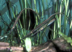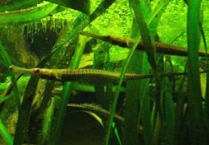 Of course these semi-seawater to freshwater "Pipes" are part of the same family as the Seahorses, Pipefishes found in tropical and subtropical oceans (Syngnathidae), and subfamily Syngnathinae. Often lost due to a lack of understanding, practice in providing them with small, appropriate live foods on a frequent basis, as much as too little cover for them to hide, feel comfortable in and too-rambunctious a mix of tankmates, some public aquariums and commercial concerns have "closed the loop" with these species, raising their young and in turn spawning, rearing progeny in turn from this generation. Species of Use to Aquarists: