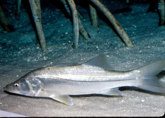 Family Centropomidae: Three genera, 22 species. Fresh, Brackish Marine waters of Atlantic, Indian, Pacific Ocean coasts. Perch like appearances, concave snouts.