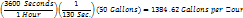 Time being the time elapsed in seconds to flow the volume, 50 gallons in this case. The rate of volume per hour is measured in gallons per hour (GPH). For example, if it took 130 seconds to flow 50 gallons of water the equation will look like this: