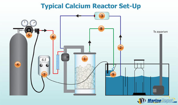 One of the main ingredients for successfully growing SPS/LPS corals is lighting, and lighting of the correct spectrum of which corals best respond to and rapidly grow. Another important key ingredient is calcium and magnesium. Aquarists with larger tanks generally prefer to use a calcium reactor which makes it much easier to maintain the calcium level (400-440ppm) in a reef aquarium. Magnesium isn’t absorbs quite as fast is calcium is in a well stocked coral reef tank and this supplement is usually added on a weekly basis to maintain recommended level of 1280-1300ppm. A general guide line is to maintain magnesium levels on a 3 to 1 ratio with the calcium level. That is if the calcium level is 425ppm, the magnesium level should be close to 1275. Without this proper balance, corals cannot absorb the available calcium present in the system. To further clarify this so it is easier to understand, consider that if your calcium level is 420ppm, but your magnesium level is only 1100ppm, only 366ppm will be available to the corals. If your magnesium level is 1200ppm, then 400ppm of the 420ppm available calcium will be available to the corals. Calcium reactors are a good investment, particularly in larger systems for maintaining proper and stable calcium levels. How do calcium reactors work and what components do I need?