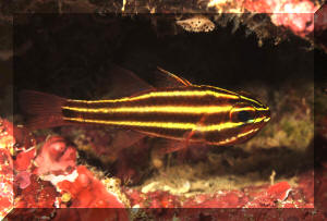Narrow-stripe Cardinalfish. To 12 cm.s in length. Indo-Pacific; Red Sea to