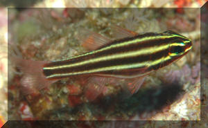| Ostorhinchus nigrofasciatus (Lachner 1953), the Blackstriped Cardinalfish. Indo-Pacific; Red Sea to the Tuamotus.