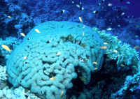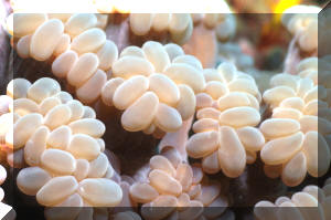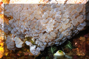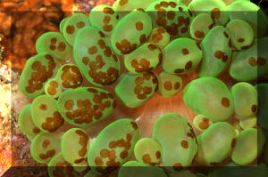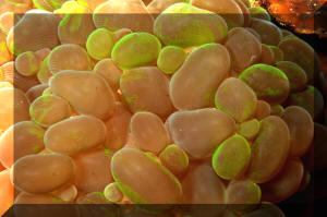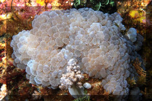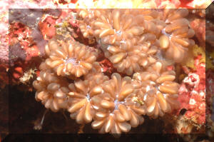 Coral. Characterized by their colonies being covered by oblong bubble-like