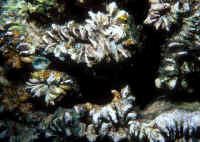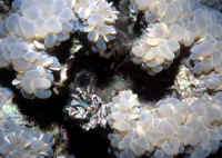 Conclusion: Amongst the most popular aquarium corals, Euphyllids have much to recommend their captive use. They're certainly beautiful, interesting behaviorally, and conditionally hardy. Most need space around them, clean water, low lighting and water movement, and occasional feeding... outside of picking out initially healthy specimens. They're larger losses are mainly a matter of a lack of care in collection and handling beyond. Don't let this short introduction decide for you however whether members of this newly-made family are for you. Investigate further before buying. Bibliography/Further Reading: Borneman, Eric H. 2001. Aquarium Corals; Selection, Husbandry and Natural History. Microcosm-TFH NJ, USA. 464 pp. Fatherree, James W. 1999. Elegance Coral. TFH 8/99. Fatherree, James. 1999. Common corals of the genus Euphyllia. TFH 9/99. Fatherree, James. 1999. Bubble corals in the reef aquarium. TFH 11/99. Fenner, Robert. 2000. Catalaphyllia. What's wrong with your Elegance Coral, family Catalaphylliidae. FAMA 3/00. Fossa, Svein A. & Alf Jacob Nilsen. 1998 (1st ed.). The Modern Coral Reef Aquarium, v.2 (Cnidarians). Bergit Schmettkamp Verlag, Borhheim, Germany. 479pp. Giovanetti, Thomas A. 1989. Keeping Plerogyra sinuosa, the Bubble Coral. FAMA 7/89. Hoover, John. 1998. Hawai'i's Sea Creatures. A Guide to Hawai'i's Marine Invertebrates. Mutual Publishing, Honolulu HI. 366pp. Humann, Paul. 1993. Reef Coral Identification; Florida, Caribbean, Bahamas. New World Publications, Inc. Jacksonville, FL. 239pp. Michael, Scott. 1996. Bubble Coral; the opinions about keeping them seem to be inconsistent. AFM 3/96. Verloop Ria and Ron Ates. Elegance Coral Catalaphyllia jardinei. FAMA 12/99. Veron, J.E.N. 1986. Corals of Australia and the Indo-Pacific. U. of HI press, Honolulu. 644 pp. Veron, J.E.N. 2000. Corals of the World. Australian Institute of Marine Science. Queensland, Australia. three volumes. |