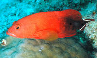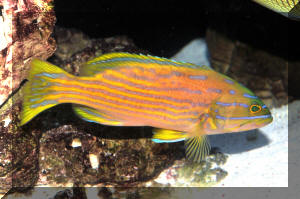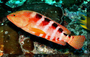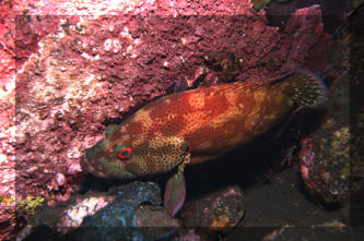 Range: Most Cephalopholis are Indo-Pacific (12 species); some Red Sea, western and eastern Atlantic, Oceania (mid- tropical Pacific), and one from the eastern Pacific. Mostly hinds are found in shallows to a few hundred feet in areas with lots of hiding opportunities. Size: The Hinds are relatively small basses, with a maximum length between one and two feet. Selection: General to Specific Look for newer arrivals with good color and outgoing or at least "curious" personalities. You will soon be wondering, "who's watching whom?" with a healthy specimen in your tank. These Basses are best purchased as sub-adults and moved as few times as possible. Adaptability reduces with growing size and captive moves. Move them as little as you can. Environmental: Conditions Though identified as bully-boys, Cephalopholis spend most of their time hiding, skulking, and looking cagily for food. I'd like to re-emphasize the point; don't move their decor around too much; like turtles, these animals appreciate a great deal of predictability in their physical habitat. Chemical/Physical Like larger basses, the hinds are tolerant of a wide range of "water quality". Any stable tropical temperature, mid specific gravity (1.022-1.023) is fine. I would suggest artificially supplementing the buffering capacity of the system with baking soda (sodium bicarbonate) or commercial preparation for the same. Rationale? The introduction and processing of so much proteinaceous foods tends to drive down alkalinity. Filtration Adequate and rigorous to handle large tanks and occasional large wastes. A high-flow outside power filter is a definite plus. Habitat: Provide your bass with at least two distinct rock/coral cave hide areas and low lighting for optimized health and behavior; but take care to construct it in such a way to prevent collapse from undermining. The genus Cephalopholis are prodigious diggers, and will move a tank-full of gravel in a system on a good day. Behavior: Territoriality The generalization for this genus is "one to a tank". They are intolerant of being housed with the same species or other similar ones of near size. Most species gather together in pairs or aggregations only for spawning, or group predation. Introduction/Acclimation: Cephalopholis basses are typically very shy when first placed in a new system. Don't be overly concerned or bummed that yours doesn't act very "bass-like" for a few days to weeks. Most hide immediately on introduction, and only come out over time, or as trained by their feeder. Predator/Prey Relations: These basses as species and individuals are not overtly "mean", but will swallow any tank-mate smaller than their mouth-opening. Reciprocally they are generally left alone by other fishes; with the exception of feisty trigger and moray-types. Reproduction, Sexual Differentiation: Hinds have proven to be synchronous hermaphrodites, males turning into females. They pair up or group spawn, releasing their gametes to the wiles of the upper water column. Pelagic young hatch out in a matter of a day or two. Feeding/Foods/Nutrition: Types, Frequency, Amount, Wastes Along with water quality, diet is primarily important in determining serranid health and color. I find that authors, like Campbell in the late seventies, plug the use of live freshwater organisms as suitable food formats. I still don't. Live goldfish may be not be nutritionally unsound, but the behavioral consequences of your livestock dashing about, equating fish-like stimuli with hunting/eating satisfaction sounds like a bad idea. Besides, feeders are expensive and inconvenient. Alternatively, I encourage the use of whole or formulated, preserved-frozen foods. Even the finickiest eater can be trained to accept these with gusto. On that same note, if your bass doesn't eat for a while, for no or any apparent reason, don't sweat it. They have been known to go "off-feed" for days, even weeks, with no long term negative consequences. Indeed, there is much to be said/written encouraging infrequent less-than-satiated feedings. This will keep your bass/hind active, create less demand on the filtration/aeration, and slow-down its growth. Disease: Infectious, Parasitic, Nutritional, Genetic, Social Hinds are relatively disease resistant and hardy; they respond well to copper, specific gravity manipulation, and other treatment regimens for infectious and parasitic diseases. Close: The bass members of the genus Cephalopholis have much to commend themselves for as aquarium specimens. Many are gorgeous marked and colored, they're hardy, undemanding in their requirements, and extremely easily fed. Just provide yours with adequate space and hiding places and you will have the closest thing to "man's best friend" in a wet pet there is. Bibliography/Further Reading: Axelrod, Herbert R. & Warren E. Burgess, 1981. Groupers and their relatives. TFH 8/81. Burgess, Warren E., Herbert R. Axelrod and Raymond E. Hunziker III, Atlas of Aquarium Fishes, v. 1 Marines. 1990. T.F.H. Publications. Campbell, Douglas G. 1979. Marines: their care and keeping, Groupers and their allies. Parts 1-3. 9-11/79 FAMA. Fenner, Bob. 1995. A diversity of aquatic life. The Family Serranidae. FAMA 9/95. Fenner, Robert. 1996. Basses, groupers or hinds? The genus Cephalopholis. TFH 12/96. Fenner, Robert. 1998. The Conscientious Marine Aquarist. Microcosm, VT. 432pp. Goldstein, Robert. 1992. Spectacular serranids. AFM 11/92 Hunziker, Ray. 1988. Orange lightning- experiences with Cephalopholis miniatus. TFH 3/88. Jonklaas, Rodney, 1975. Search for the super-duper grouper. TFH 8/75. Kerstitch, Alex, D.A. Thomson & L.T. Findley. 1979. Reef Fishes of the Sea of Cortez. Wiley Interscience. Michael, Scott W. 1998. Gorgeous groupers. One genus really does stand out. AFM 1/98. Murphy, Geri, 1992. The Caribbean Coney, a common fish of uncommon colors. Skin Diver 5/92. Nelson, Joseph S. Fishes of the World. Wiley. 3rd Ed. 1994. Pyle, Richard L. & Lisa A. Privitera, 1989. The harlequ