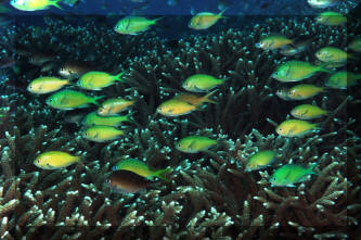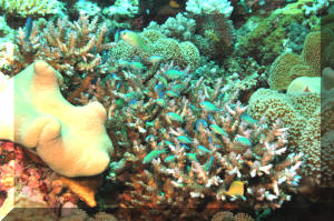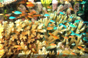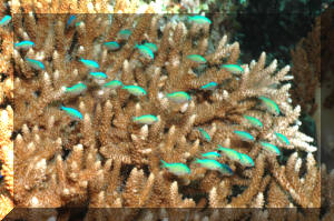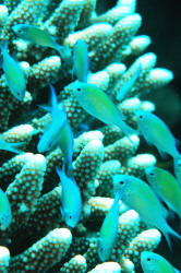 Bibliography/Further Reading: Allen, Gerald R. 1973. Chromis bitaeniatus Fowler and Bean, the juvenile of Abudefduf behni (Bleeker). TFH 5/73. Allen, Gerald R. 1975. Damselfishes of the South Seas. TFH Publications, Neptune City, N.J. Allen, Gerald R. 1991. Damselfishes of the World. Aquarium Systems, Mentor, Ohio. American Society of Ichthyologists and Herpetologists, 1978. The Biology of the Damselfishes a symposium held during the 56th annual meeting of the ASIH. Rosentiel School of Mar. & Atm. Sci. U. of Miami, 1980, 145-328. Emmens, C.W. 1984. Damselfishes. TFH 9/84. Fenner, Bob. 1989. Successfully selling the popular marines. Pets Supplies Marketing 1/89. Fenner, Bob & Cindi Camp, 1991. Damselfishes, saltwater bread and butter. FAMA 10/91. Fenner, Robert. 1998. The Conscientious Marine Aquarist. Microcosm, VT. 432pp. Fenner, Robert. 1999. The indomitable damsels- Family Pomacentridae. TFH 1/99. Flood, A. Colin. 1992. Thos darling damsels. TFH 8/92. Gronell, A.M., 1984. Look-alike damsels. TFH 32(8) 48-53. Randall, John E. 1982. Chromis pelloura; a new species of damselfish from the northern Red Sea. FAMA 11/82. Stratton, Richard F. 1992. The Blacksmith Damsel. TFH 4/92. Thresher, R.E., P.L. Colin & Lori J. Bell. 1989. Planktonic duration, distribution and population structure of western and central Pacific damselfishes (Pomacentridae). Copeia 1989(2), pp. 420-434. |