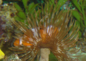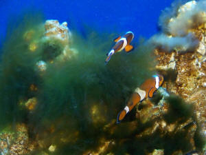 A pair of clowns with a pair of anemones 2/27/09 Hi there, <Debbie> Been browsing through the net and going through your site intently for past few days in the quest to 'answer' a particular curiosity. I have pair of false percula clowns which I have kept over 2 years. They've been hosting a decent size Red Bubble Tip Anemone, but the female tends to chase the male away. <How large a system?> She doesn't like to share obviously. But the male will still be swimming very close by... occasionally, he naps by the side of the anemone. <Common behavior> There's no other clown fishes currently present in the tank, apart from these two. If there is a present of another BTA, would it be highly likely for this male clown to host this new anemone? <Mmm, maybe... but I would not go this route> The main question is... if he chooses to do so, would it turn him into a female - simply because he host a different anemone from the female? <If this system were large, even "long" enough, there is this possibility, yes> I don't plan to add anymore clowns since I'd like them to remain as a pair. They've been good as a pair - apart from the slight chase away from the anemone... else, they've been friendly too all new fishes and all the new fishes are also friendly with them. But I do intent to add the new BTA (coz it's actually a gift and it's really quite 'hard' to say no since it's going to be a beauty). <Do acclimate the two anemones to each other by "mixing" water back and forth through/between separate systems for a few weeks> Shall I host it with some sexy shrimps instead just to keep it 'occupied' so that the male will be uninterested? <A worthwhile trial> My tank details: The main tank is 4ft x 2ft x 2ft with 6x T5 lights setup and standard corner overflow. There are plenty of live rocks and a thin layer of live sand (just enough to cover the tank base). The sump is 3.5ft x 1ft x 1.5ft running through a layer of sponge, BK sponge, Eheim return pump and an external chiller to keep temperature at 26C... and a mixture of macroalgae and Chaeto in refugium. Water Readings: Ammonia, Nitrite, Nitrate, Phosphate = 0. Feeding: Daily = 2-3 times a day, each time with a 15ml liquid food mixture (fresh made saltwater with Cyclop-eeze powder, Phytomax, Vitamarin C and zooplanktos-M + 10-15 drops of live oyster eggs by Reef Nutrition. Twice a week = chop fresh market prawn for the plates / Mysis shrimp for the suncorals. Coral stocking = Moderate pack - LPS (variety of plates, Candycanes, moon corals, Goniopora, hammer coral, brain), few small rock piles of Zoas, buttons & mushroom, 2xSPS frags, 1xblueberry sea fan, 2xsuncorals, 1xChristmas Tree+Porite rock, couple of feather dusters, 1xblue clam. Fish & Invertebrate stocking = 2xclowns, 1x filament flasher wrasse, 1x lawnmower blenny, 1xblue mandarin, 1xscooter blenny, 1xcleaner shrimp, 1xfireshrimp, 2xfirefish goby, 3xpajama cardinal, 1xyellow clown goby. Future fish stocking = 3xblue Chromis (currently in quarantine tank) and possibly a female blue mandarin (at a much later stage). Thanks for your time, and keep up with the fabulous work. Your site has the most intensive collection of case studies which is great since everyone experiences something slightly 'different'. Regards, Debs <Ah, yes... and thank you for writing so well, sharing. If it were me, I might well try the other BTA here... acclimating it as stated, at the far end away from the present specimen. Bob Fenner> B&W Clowns won't host, 2/25/09 Hello, <Hi> I recently purchased two B&W Ocellaris Clowns and they refuse to host with any Anem. I purchased a Sebae and they wont go near it. So then I purchased an RBTA.. they are completely uninterested. <Not uncommon, especially with captive raised clowns, they may never show any interest in an anemone.> I have another pair of clowns that host in a bubble Anem and do fine and everyone gets along well but they refuse to host. Is there anything you can do to coax them into hosting into the RBTA? <Not really besides give them some time, but they may never host.> I would really like if I could see them in their new house! <Having trouble with the financing maybe?> On a side note they seem to only want to bubble Anem that belongs to my other pair? <This may play a part too, perhaps they are not a pair, but waiting to move in on the female hosting in the bubble.> Sometimes they are let in by the clowns but other times chased off. <While it is a rather large tank there is still a chance whenever trying to mix clown pairing that you end up with only the strongest pair, the other harassed to death.> Any suggestions would be great! Thanks, Cassidy <Not much to do here other that hope and be patient, if they want to host they eventually will.> <Chris> Heteractis crispa And A. perideraion, pairing 2/16/09 Dear All, <Hello Carolyn> Just a quickie - recently bought an anemone that I think is a h. crispa that has had some bleaching (it's a very pale tan colour, not fully white, with purple tips although haven't been able to see if there are any marks around the oral disk) - it happily accepts chopped meaty food (appears to like cockle most) and is happily settled in the middle of the tank by a reef wall, foot firmly stuck in the sand. <Mmm, I'm curious as to your tank size and lighting here.> I have two tank-raised black/white false Percs who show no interest in the anemone at all (am I right in thinking they wouldn't usually accept this one in the wild?) however am reading conflicting information regarding a second pair of clowns, the pink skunk clowns (a. perideraion), some sources claim they will happily host h. crispa, others including your lovely selves don't actually specify that they will associate with it, although there are images of the two together. <Tank bred clownfish will rarely associate with an anemone...they don't know what it is, haven't been raised in the company of one. If the young clowns were collected associating with an anemone, but tank raised to a