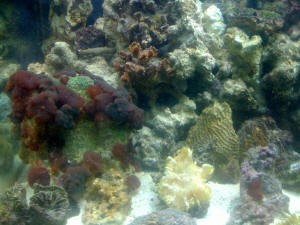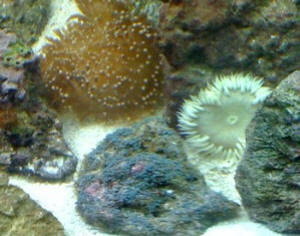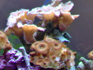Allelo... 3/19/09 Cnid. allelopathy concerns... mostly 'Shrooms 3/12/2009 Hi crew, <Marc> My head is officially spinning. I have been logging hours of reading on your website about chemical warfare, and have become very concerned about my leathers and LPSs in the same tank. I have decided to keep the LPSs and return the leathers. <Perhaps best> I have a 75 gallon tank, that I do run charcoal on, that houses a Hammer, Torch, Colt, Finger Leather, Toadstool, Cauliflower and Daisy Polyp corals. I also have a mix of about 8 different mushrooms. <All can be "blended" in a system... given careful introduction, spacing, mixed water acclimation through quarantine....> Now all the leathers aside from the colt will be gone tonight, I don't see any ill effects yet on the LPSs, but better safe than sorry. Actually, the opposite seems to be the case, since I added the LPSs the leathers infrequently open., and they are on opposite sides of the tank. My question is about the mushrooms. I understand they can be unyielding, but do they pose any treat to the LPSs chemically? <Can, yes> I've been looking on WWM, but what I keep reading is that they just have a tendency to out grow slower growing corals. <Again, possibly... Depends more on prevailing conditions... light, foods mostly...> I moved all the mushrooms to the bottom of the tank, aside from two fuzzy mushrooms that attached themselves to a large rock which the Hammer is sitting. I know they are both capable of stinging each other, my question is, who will win? <More times than not the Euphyllia... IF the Corallimorphs are starting larger, healthier, are "higher up" in the water... they might best the Hammer> I hate to put it that way, but it seems to be to difficult to move or remove either, I'm less worried about the Mushroom, seeing that I'm looking to only add LPSs from here on in. Thanks for the help again, Marc <Again... with attention to slowly adding more Cnidarian life, consistency in maintenance, water quality... these can all learn to live together. Bob Fenner> Mystery deaths... "coral fish allelopathy" 3-5-09 Well, it comes time for me to write back in to you guys, for your well appreciated advise and support. The pic I have attached is of my Stomatella varia, you identified it for me the first time I saw it. I just happened to catch it out exploring for the first time since! I thought you might like to see it (its gotten a little bigger!). You can use the pic on your site if you want. <Thank you for this> To catch you up on what I have; 5 1/2 month old 29g (40lbs live sand, 50lbs live rock) LPS tank (Diaseris, Euphyllia, Trachyphyllia, Caulastrea, Micromussa, Dendrophyllia, and Echinopora), a few small SPS (xenia, zoos, and mushrooms), and one Leather (Nephthea). I am well aware of being over stocked with corals, and am in the process now of researching new equipment for a 90g I will be purchasing this spring. I believe I have the chemical warfare under control <I would NOT add any more Cnidarian life here> with weekly 5g water changes, and am now using Chemipure in my hob filter (I just started using this 4 weeks ago, and am not sure how often I should change this out considering my tank load. <I would "leap frog" the one unit of Chemi-Pure with a new one, leaving two units in at a time... removing the one that is two months old...> I was changing my regular carbon biweekly until trying this). I am also using an AquaC remora skimmer. My corals are not my concern in this email. They are growing fast, and I actually have a few new polyps forming on my Dendrophyllia! I should add, that along my hitch hiker Stomatella, I have a few small hermits, an Emerald crab, a Turbo, and Trochus snail, a Fire shrimp, and lots of hitch hiker stars which are all doing well. My parameters are; SG 1024, PH 8.4, NH3/No2: 0, No3: 5. I have had some trouble keeping Ca and KH stable, trying to keep KH at 10, and Ca at 440. The tank doesn't seem to like to stay that high, and tends to stay at KH 7-8, and Ca 400-420. My fish are my concern today, and after reading and reading, I am writing. Since Dec, I have tried and tried to keep fish, and they keep dying! <... Is almost certainly resultant, closely related at least, to interactions between your disparate groups of "corals"> In Dec. I bought a Royal Gramma, and a Banggai Cardinal. They each made it 2 weeks to the day, finally at the bottom gasping for air, and dying quickly after. I let my tank go fishless for 5 weeks, and bought another Gramma. He seemed to be doing well, so a week later I bought another Banggai. My 2nd Banggai made it just under a week, dying with a white string of death, and gasping for air. My Gramma was still eating, so I tried another fish (a Flametail Goby) In the middle of this, I thought maybe there may be a parasite in the tank, catching my Gramma flashing on the rock once. I read up on your website, and bought a Neon Goby, so he could clean any thing up if there was. Well, my Gramma made it another 2 days, and then my Flametail committed suicide! UGH!! Didn't he know that he couldn't swim on my hardwood floor??? <Heeee, Ohhhh> I even have a cover on my tank! Well, I waited 2 more weeks, and was given another Banggai by my awesome LFS. He had a hard time at first, not eating for 4 days, then he came around and was eating like a monster, and all of a sudden, 2 weeks after he came home, white string of death, gasping for air..... What none of us can figure out, is what the heck???!!! <Read here: http://www.wetwebmedia.com/cnidcompppt.htm or perhaps better, use the in-place search tool with the terms: "coral fish allelopathy"> My Neon, is still the happiest creature in the tank with his goofy little face, now in my tank for 6 wks!!! <This group of fishes lives in close association with "corals"... is much more tolerant of their activity> His staying alive (which is great of course), is confusing all of us! I drip acclimated each fish each between 45 min.s and 2 hours each, nothing wor