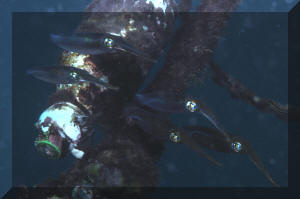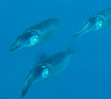 Reef Squid. Recognized by its long body-length finnage. Found near