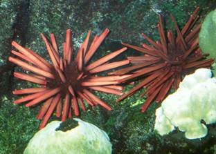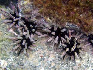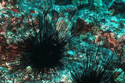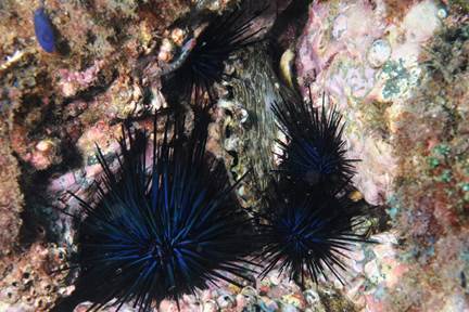 group of Diadema urchins… puncturing his suit, knee and upper leg.