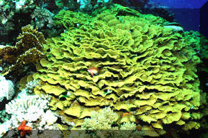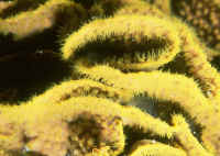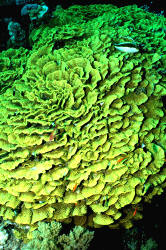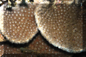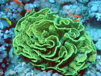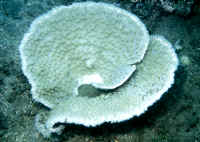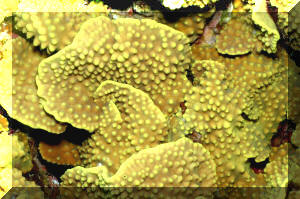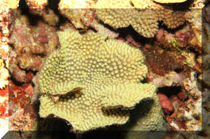 Acclimation: For Azooxanthellates species should include the application of juice and bits of meaty foods sprayed with a turkey baster in the colonies direction at night time (when their polyps are typically open), even if their tentacles aren't evident. Placement: Both photosynthetic and non-photosynthetic species can/should be placed in areas of good lighting... the latter to assure adequate water flow. Further, to prevent covering by detritus Dendrophylliids should not be placed on the bottom but anchored up and on rocky points to facilitate water flow around their colonies. Reproduction/Captive Propagation: Tubastrea has been reproduced by asexual budding, breaking as well as (sexual) planula release. Turbinaria are easily propagated by the breaking off of pieces from a well-adjusted, healthy colony. This genus has also been observed to release planula larvae in captivity. Foods/Feeding/Nutrition: Tubastrea need daily feedings to all polyps to stay healthy... a regular regimen of turning off filter pumps during these times (on timers best... so you don't forget to turn them back on) for fifteen minutes or so (with other, recirculating pumps running) is optimal. Photosynthetic Turbinaria can get by on foods manufactured by their endosymbiotic algae, but are better fed (small zooplanktonic items or mashes of larger items) a few times a month. Disease Without regular food offerings, Azooxanthellates species will not open... begin tissue recession, and eventually succumb to algal overgrowth. Cloze: The lack of success with this family is principally due to two factors, for the Azooxanthellates Tubastrea et al. genera, a lack of feeding (or provision for the consequences thereof), and for the photosynthetic Turbinaria, a general lack of "promotion"... they're easily kept, as long as maintained off the bottom and swept/blown clean of detritus and mucus. Bibliography/Further Reading:Borneman, Eric H. 2001. Aquarium Corals, Selection, Husbandry and Natural History. Microcosm/TFH Charlotte, VT. 464pp. Fossa, Svein A. & Alf Jacob Nilsen. 1998 (1st ed.). The Modern Coral Reef Aquarium, v.2 (Cnidarians). Bergit Schmettkamp Verlag, Bornheim, Germany. 479pp. Hoover, John. 1998. Hawai'i's Sea Creatures. A Guide to Hawai'i's Marine Invertebrates. Mutual Publishing, Honolulu HI. 366pp. Humann, Paul. 1993. Reef Coral Identification; Florida, Caribbean, Bahamas. New World Publications, Inc. Jacksonville, FL. 239pp. Veron, J.E.N. 1986. Corals of Australia and the Indo-Pacific. U. of HI press, Honolulu. 644 pp. Veron, J.E.N. 2000. Corals of the World. Australian Institute of Marine Science. Queensland, Australia. three volumes. |