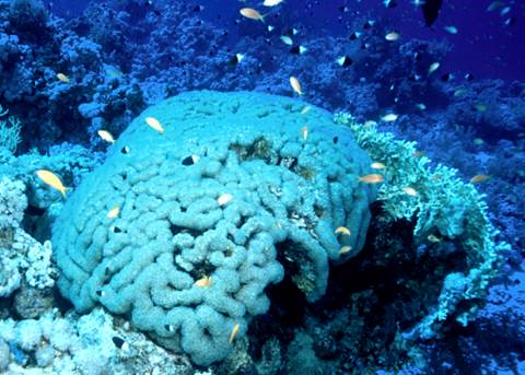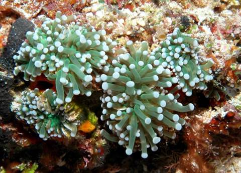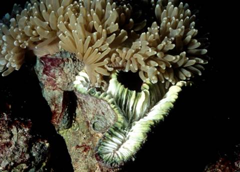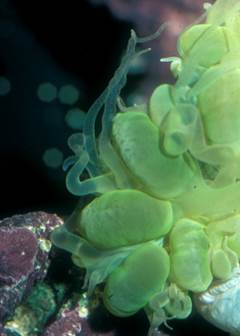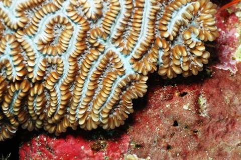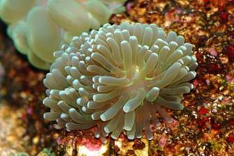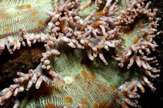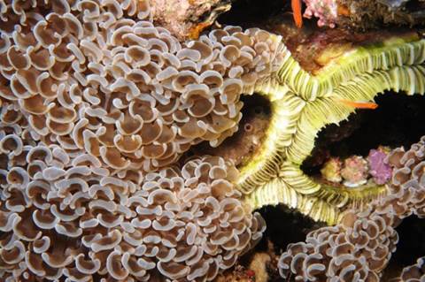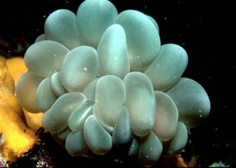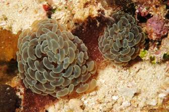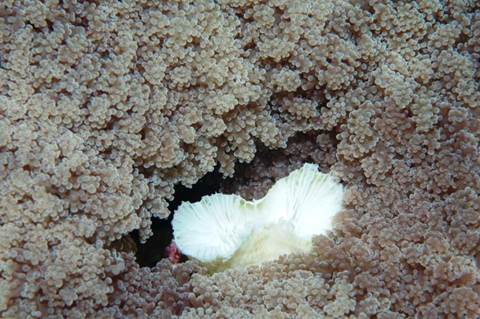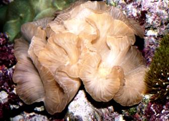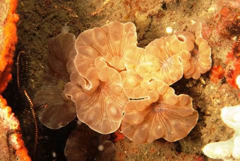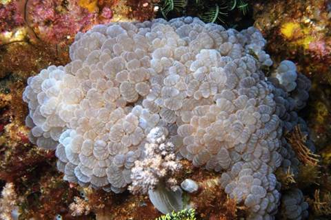 Nemenzophyllia usually occurring under overhanging rock, and Plerogyra,