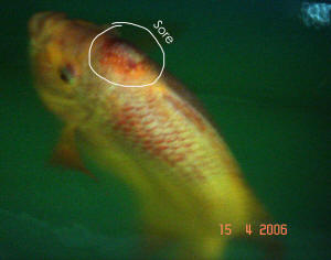 external infection. Do a 50% water change, vacuum the gravel and clean