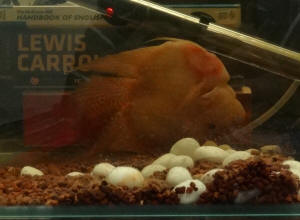 being boisterous enough for this Flowerhorn to be scared and jumped into