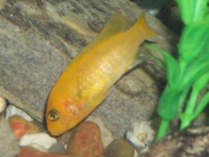 moved them to my 100 gallon. This Mbuna is quite bossy to the blood