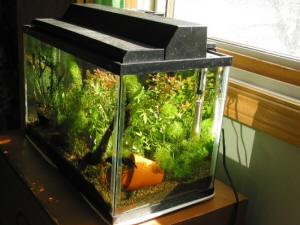 filtered, minimum twenty-litre (five-gallon) aquarium, second-hand