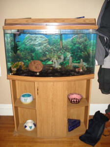 Clownknife feeding - 01/24/06 I have a 6" Clownknife a 3" Oscar and a 9" Arowana and they all get along fine but I find it difficult to fee the knife be cause the Oscar hogs all the food. What can I do? Mark <Fill the Oscar up with pellets, trying to feed it about the same area/time daily... then feed the Knife. Bob Fenner> Re: Xanthichthys auromarginatus/freshwater killer... feeding and Notopterus comp. 2/4/09 Thank you for the email, After sending it, I realized that blue throat triggers eat the smaller foods like Mysis shrimp and brine shrimp. (are those the same thing?). <Nope> Anyways I put some frozen brine shrimp in (enriched, I'm getting some Kent Zoë today) and he swam around eating it. <Ah good> To answer your question the two eels are echidna nebulosa and Gymnothorax richardsonii. they are small right now, at about eight inches, and I vary their diet with frozen silversides, live mussels, clams, and crabs, and frozen or raw crabs and frozen or raw shrimp. <Sounds good> On the freshwater topic, I was just curious if a protein skimmer would work on a freshwater tank, or if one would need a skimmer. <Mmm, not really and no...> I am not planning to ad one or anything, I am just curious. Also, when the clown knife gets bigger, would it be wise to separate him from the king tiger Pleco, and the black ghost knife? <Yes> Do you think the tire track eel and the silver dollars will be safe in the long run too or is it best to separate them when he gets to a certain length? <Could be inhaled with a big "Whomp" some evening...> thanks for all the info, will <Welcome. BobF> Mixing Apteronotids and Notopterids, Dempsey color, UGs... 9/10/07 ok a couple questions... <The beginning of sentences are capitalized...> could I house a black ghost knife and a clown knife together? <Not a good idea> my blue Dempsey is about 2 inches long , but he hasn't become blue yet. a little in the head and tail but not solid. rest of his body is just white. water quality is great so is there something wrong with him or does the color just come in time? <Likely> what's your opinion on undergravel filtration? <Tried and true. Can work in many applications. RMF> thank you. Clown Knife Fish Non-Live Food Training 06/28/07 Hello, Your website is great! Unfortunately I could not find anything about training a Clown Knife Fish to eat non-live food. I've tried even warming krill/shrimp, I've tried Shrimp Pellets, Freeze dried Bloodworms, and Flakes. My 6" clowns just don't eat it. I have to revert to Live Ghost Shrimp, but I do not want too. Please help me find a way to train the Clown Knife to eat other prepared foods? Step by Step, please. As you know, Feeding time for these guys is only at night when the lights are off. Hope you can help? Thanks <Greetings. Training Knifefish to accept dead food follows the same pattern as with any other opportunistic carnivore -- patience and a little starvation! As you realise, many people keep Knifefish by feeding them goldfish and minnows. This is very dangerous in the long term because of the risk of introducing parasites and the poor nutritional value (high fat and thiaminase content) of goldfish and minnows. So well done on doing the responsible, sensible thing by weaning your Knifefish onto safe alternatives. Small Knifefish are fond of (wet) frozen bloodworms, i.e., the kind you keep in the freezer. I have yet, in 20+ years of keeping fish, to find anything that likes freeze dried bloodworms or brine shrimp. I know people use them, but I've never had any luck with them. So get the wet frozen kind. These smell yummy and even difficult fish seem to accept them readily. If you train the baby Knifefish to take frozen foods, feeding the adults becomes very easy. Larger Knifefish in the wild eat fish, large insects, and crustaceans, so these are the things to concentrate on. One of the best ways to use frozen whitebait (or any other small, silvery fish) is to defrost it and then throw it into the current of water coming out of the filter. The flash of silver mimics the movement of small fish, and predatory fish will usually strike at the flash, and eat the food. I have personally found small pieces of oily fish (such as salmon or herring) extremely good for tempting predatory fish, presumably because of the smell, but be warned that oily fish *heavily* pollutes the aquarium and you will need to do a big (50%) water change afterwards. As well as fish, crustaceans like unshelled prawns and crayfish are excellent foods for adult Knifefish. If all else fails, alternate live foods, such as earthworms, mealworms, and crickets can also be used. Once the Knifefish learns to accept a variety of foods, tempting them onto floating pellets is not difficult. It helps if they share a tank with other fish that feed from the surface, like Tinfoil Barbs or Giant Gouramis. The Knifefish will see where the food is coming from, and take the floating pellets. Obviously, Knifefish are big and potentially aggressive, so don't mix with smaller fish or anything likely to pick a fight (like cichlids). Cheers, Neale>Re: Clown Knife Fish Non-Live Food Training 06/29/07 You guys are great! Thank you Neale for the information. <You're welcome. If you love Knifefish, keep an eye out for a book called "Jurassic Fishes" published by TFH. It's a beautiful book, sadly out of print, but filled with the loveliest photos of Knifefish as well as other "monsters" like Arowana and gar. One of my favourite books! Neale.> Feeding Clown Knife 03/17/07 Hi <Hello Ray, Brandon here.> Ive had a clown knife for a couple of months now, and during that span it has grown from 3 4 inches to 6 7 inches. At first, when he was smaller, I fed him a combination of brine shrimp and blood worms (frozen) along with small (not goldfish feeders) fish. However, I had to leave for college during that time (I got it during my winter break), but not without telling my parents what I would like them to feed it (e.g. continue feeding it brine shr