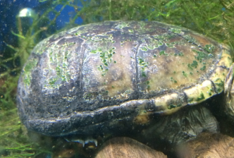 The second concern is with one of the turtle’s shells. He has a spot of brown on