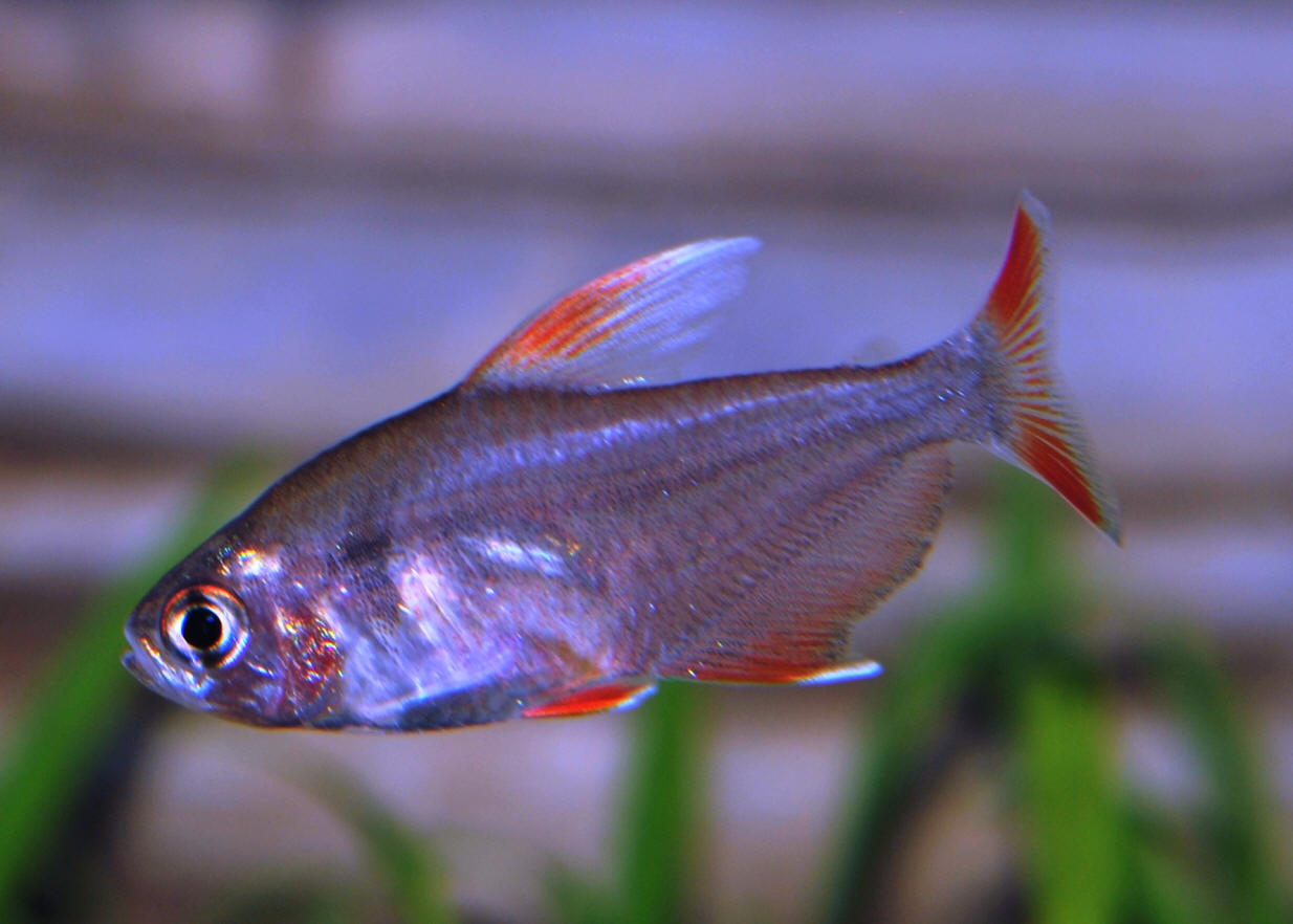 the Serpae tetra, Hyphessobrycon eos, i.e., a schooling fish, and