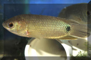 Red Honey Gourami Refusing to Eat - 12/12/06 Hi there ... my name is Dave and I have a male & female red honey Gourami. I had them and a few other fish ( tetras, Corydoras, Plecos ) in a small 10 gal tank. I recently got a 20 gal and set it up slowly transferring fish over. One afternoon when I had most of the fish in the other tank I noticed the gouramis breeding. <Neat!> I watched for a couple hours and they did their little dance and the male put the eggs in his small bubble nest. The next day when I turned the lights on the bubble nest was gone and he actually seemed fairly upset about it. <Happens> Later that day I moved the rest of the fish to the larger tank in hopes that some of the eggs would survive ... but I never saw any baby fish. <Mmm... are very tiny when first hatch out... about four days in the lower 80's F...> All the fish seemed to be eating fine in the new tank. Of course the gouramis were a little shy until they became accustomed to their new surroundings. Within the last week or so the male Gourami has not been swimming much that I can see. He very seldom eats when I put food in the tank. I think the last time I saw him eat was 2 or 3 days ago. I occasionally see him swimming around a bit but he quickly hides and stays in one spot for long periods of time. He seems to be able to swim away fine when he wants to though. I've noticed a few of the fish (not him) scratching their gills against rocks or plants but it's not constantly. I've not seen any Ich on any of the fish! Could there be some sort of parasite affecting his eating? <Possibly...> Or could it be some sort of emotional reaction to losing his babies? <Hmmm, more likely the new surroundings, being moved here...> I've never heard of that with small fish before but ya never know! P.S. I've also been doing frequent water changes in the new tank in case there's something in the water that's bothering him! <Mmm, I would hold off on this for a bit... make sure the tank is readily cycling> Also ... I feed a variety of foods .. TetraMin, Frozen Brine Shrimp, Tubifex, Spirulina Discs, Shrimp Pellets. <Sounds good!> Any suggestions that you may have would be greatly appreciated. Thanks .... Dave B. <I would take a wait/see approach here with your Colisa gouramis... and consider setting up the smaller tank for some future breeding trials... Do read up ahead of time re culturing live foods... Bob Fenner> Re: Red Honey Gourami Refusing to Eat 12/14/06 Hey Bob, <David> Thanks for you quick response and suggestions! I did notice him eating a couple pieces of frozen brine shrimp yesterday. Maybe it's just the adjustment for him. <Yes> I've been trying to hatch brine shrimp for the last couple of weeks. <A worthwhile experience> I'm on my third batch now ... it just doesn't seem to be working. <There are a few "tricks" one can/should prevail upon re Artemia... can be found on the Net easily...> I've had this small jar of eggs for a long time but I didn't think they ever went bad. <Mmm, can/do... with air, water exposure, time going by... some brands, years have little hatch-rate to start with... but do read re light bleaching technique, etc...> I'm now trying a method where apparently you don't need sea salt. I've had the sea salt for about as long as the eggs so maybe it's no good !! <Mmm... doubtful here> I found someone on the internet that was saying they hatch the eggs in just water and baking soda so I'm giving that a try! <Interesting. Please report back with your experience here> Apparently the baby shrimp last longer in the tank with the fish as the adjustment isn't as harsh for them. I've got a 2L plastic bottle sitting in the baby swordtail tank - to keep the eggs/shrimp warm - and an air hose going in to circulate the eggs. If this doesn't work I was thinking of getting some new brine shrimp eggs to try! <Good idea> Thanks again ... and let me know if you have any thoughts about the brine shrimp hatching. Dave B. <What little I/we have is posted here: http://www.wetwebmedia.com/artemiafaqs.htm Bob Fenner> Re: Red Honey Gourami Refusing to Eat 12/17/06 Hi again Bob ... good news and slightly bad news. <Oh?> The bad news is that the brine shrimp didn't hatch ... or if they did they didn't last long. <Mmm, and do take care not to introduce the eggs/cysts themselves to the tank... gut impaction problems...> Some of the eggs looked a little puffed up and there were a few small fluffy white things floating around ... possible dead shrimp. I think I'll just try some new eggs! <Good idea> The good news is the male Gourami. After he started eating a bit he seemed to be coming out a bit more for some food. I found a reasonably priced male dwarf Gourami at a LFS. Not only are they very beautifully coloured I thought that it might stimulate the male honey Gourami to be a bit territorial. <Yes...> Well ... it seems to have worked! Whether he just got over his little episode or the introduction of another male helped I'm not sure. But now he's swimming around and eating properly. <Very good news> Thanks again for all your help and have a Merry Christmas!! Dave B. <And to you and yours. BobF> Dwarf Gourami underfed because of its slowness 5/27/06 Hi Crew <<Hi, Tim. Tom here.>> I have tropical community tank with some dwarf Gouramis, silver dollars and various livebearers. <<Okay.>> I am concerned that the dwarf Gouramis are underfed as they seem to be very slow compared with other fish, esp. the silver dollars, when it comes to dinner time (as well as being generally slow at other times). <<Do your fish show signs of being undernourished, Tim, i.e. sunken sides as opposed to being "filled out"? I ask this because sometimes "perceptions" can lead us overfeed, which isn't good. (I occasionally hear from other members of my household that the fish "aren't getting enough to eat". The fish would also like me to believe this by the way they behave when I approach the tank.) :)>> Apart from separating them - which is impossible at the