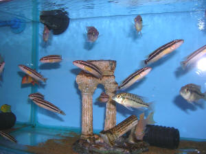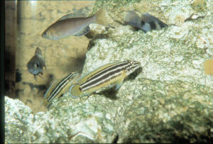 containing Julidochromis regani, J. marlieri, and J. 'Gombi',