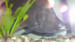 Black clown knife with pop eyes? 2/25/09 Hi! Hopefully you can help me with a problem..within the last week. my black clown knife's eyes have been bulging and they are getting worse. I have done a 50% water change. but the BCK is now swimming by the top and I want to help him. but don't know what meds to give him. Can you help? Thanks! Karen <Hello Karen. With Popeye, there are usually two causes. If there's just one eye popped, it's likely physical damage or aggression, so you need to look at things from that angle, checking the tank is big enough for the fish, doesn't contain aggressive tankmates, and so on. If both eyes show a similar degree of swelling, it's usually an environmental issue, in which case you need to review water quality and water chemistry stability. Clowns are big, messy fish and need extremely generous filtration to stay in good health. For an adult specimen (at least 60 cm/24 inches in length) you'd be looking at a tank around 750+ litres (200+ gallons) in size and equipped with a filter rated at 8-10 times the volume of the tank in turnover per hour. 50% weekly water changes would surely be essential. I'm mentioning all this because unless the environment is fixed, the eyes won't heal. So far as treatment goes, an antibiotic like Maracyn coupled with Epsom salt in the water at 1-3 teaspoons per gallon should do the trick. http://www.wetwebmedia.com/popeyefaqs.htm Cheers, Neale.> Thank you for your help! :0) I do appreciate it! :0) -Karen <Happy to help. Good luck, Neale.> Clown knife problem 7/5/05 Dear Bob, I hate to bother you with this, however you seem like one of the only people that might be able to help me. I have a clown knife, approximately 7 inches long. He was accidentally overfed and became grotesquely bloated. I haven't fed him now in a month, yet the bloating has not gone down. I spoke to the owner of a local fish store who advised me to add salt to the water. I have been doing this but it doesn't seem to help. I have never seen this before and I am having a difficult time finding anyone who can help. <Mmmm, what sort of salt? I would try a level teaspoon of Epsom (Magnesium sulfate) per ten gallons of water> Have you ever seen or heard of this before? If so, what should I do? If not, can you refer me to someone? Thanks again for your time. Warmest Regards, Janet Sanders <Some sort of gut blockage... what were you feeding? Hopefully not goldfish... Bob Fenner> Re: clown knife problem 7/6/05 Dear Bob, <Janet> Thanks for the quick reply. Unfortunately, it is goldfish. I had fed my fish the night before leaving on a business trip. The next day, my son (not knowing I had just fed the fish), fed them again -- my fish has been sick since. What should I do? Thanks, Janet <Try adding a level teaspoon of Epsom salt per ten gallons of system water... Hopefully this will "move" the blockage. Bob Fenner>Clown Knife With Problems 12/24/05 Hello, I've skimmed over the articles on clown knife fish and haven't really seen anything about what I've got to ask .Recently I purchased two clown knives. Each is now no more than six inches long. For now, each is in a separate tank until I can get one larger tank at the beginning of the year. Both are fed live feeders , which I'm beginning to learn isn't the best idea , but one will take shrimp pellets at times . I have been unable to find squid ( other than at the grocery store and am not sure if that's the correct way to feed them) or live krill in my area. One seems to be getting a little fatty in the belly. At first I simply took this to be a by product of healthy feeding because this fish can put away the little live feeders . Only now the seemingly distended belly remains . I don't recall it's sides poking out so when I first got it. But at the pet store both of the fish were in the same tank with several other kinds and now it has much more elbow room. I also keep my tanks and filters clean on a bi-weekly basis. I haven't had any outbreaks of any kind among any of my fish for a long time. My question is : Is my fish healthy? <A fish that has a distended belly doesn't sound too good.> Overfed? < Clown knife fish can be real pigs. It is easy to over feed them.> Or ,possibly , infected by some internal parasite and ,if so, how can I be sure and what treatments would be necessary? < It could be an internal bacterial infection. If it is it needs to be treated with Metronidazole .> And if the fish is healthy - does that mean the slimmer one isn't and I should up it's rations? < I would feed no more than can be consumed in two minutes once each day.> Something which may be related : How often should Clown Knives be feed ? Daily ?Or just every other day ? < Bigger knifes can be fed a couple times a week as their metabolism slows down as they grow.> On a side note , Do you receive many complaints about pet shop owners either giving less than knowledgeable advice or just not giving any to people ,especially those just getting into the raising fish , purchasing the more exotic fishes - outside of the guppies , goldfish , mollies Etc.? < If pet shops and fish store were giving good advice all the time then we would not be answering questions.> It's just that I've had to make major tank purchases and accommodate them within my home simply because the seller did not elaborate on just how big some of these fish can get. I know they are in business to stay in business through sells and I have gotten better informed since I began but in listening to other customers when making their choices I rarely hear the seller say ' How big of a tank do you have ? or What other kinds of fish do you have in it ?' I've come to deal with only one seller in my small area and I've learned and am still learning the right questions to ask but even then I don't get the entire story . What worries me is that most people I meet can tell you ' Yes , an Oscar can get very big ,' but they couldn't tell you how large a clown knife can get or an electric catfis
