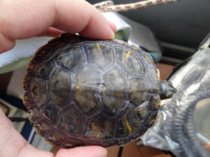 say it's too big for home treatment and this turtle requires a trip to