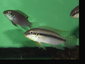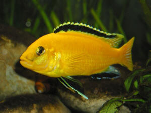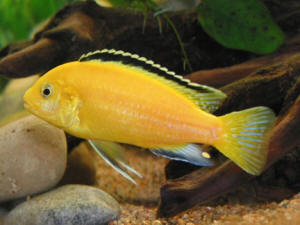 Labidochromis caeruleus male displays lacklustre colour. Photo