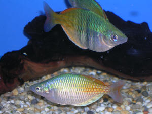 Melanotaenia boesemanni--the fish on top is a male, the one
