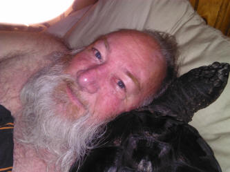 sleep with us he'll crawl back into his swimming pool.Gimpy will cuddle